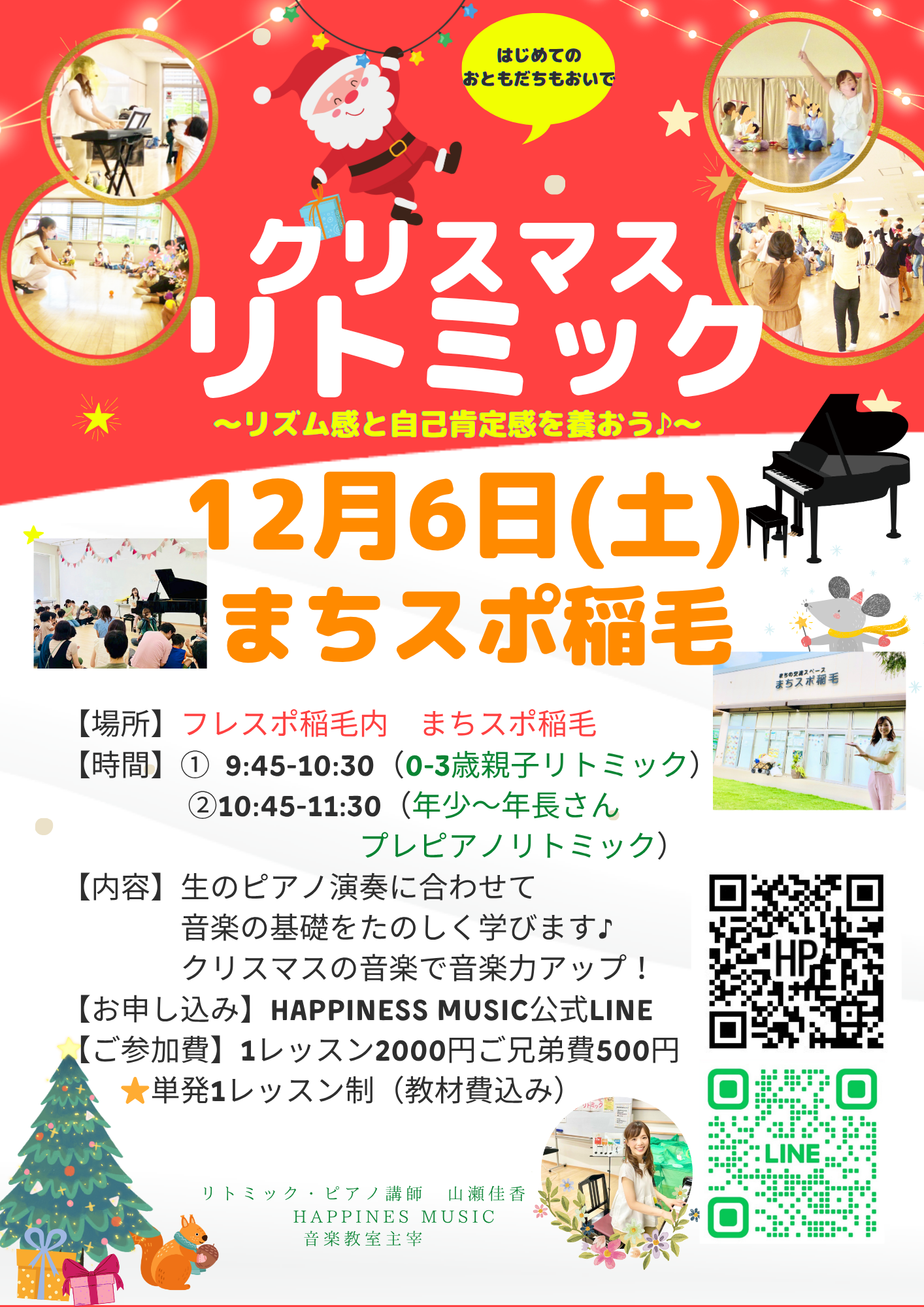 【クリスマスピアノコンサート12/6(土)】リトミック音楽力アップ!@まちスポ稲毛