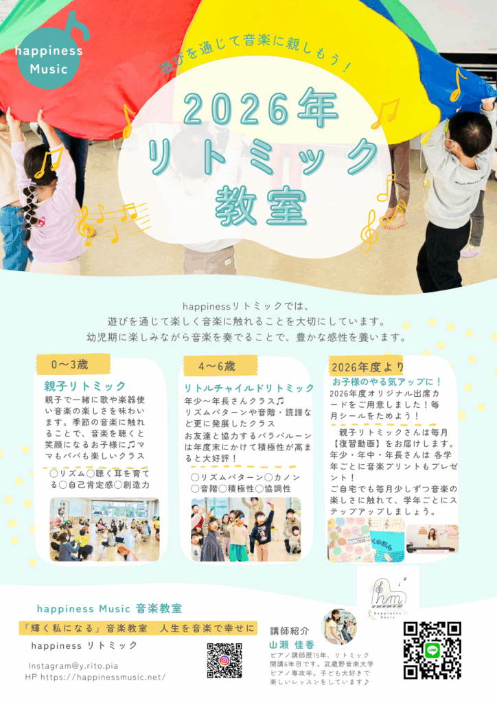 お家復習の動画があるリトミック・ピアノ音楽教室!