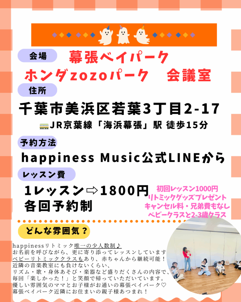 幕張ベイパーク リトミックレッスン 2025 12/03 幕張ベイパーク October 13, 2025December 3, 2025 開催日: 12月 15, 2025 9:30 am - 11:30 amカテゴリー: 幕張ベイパーク 幕張ベイパーク